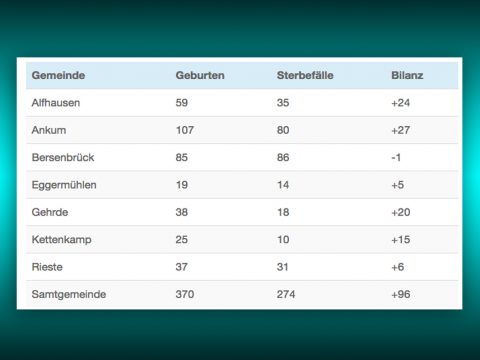 Bis auf Bersenbrück gab es in allen Orten der Samtgemeinde 2017 mehr Geburten als 2016. Ankum verzeichnete den höchsten und Rieste den geringsten Zuwachs an Einwohnern.