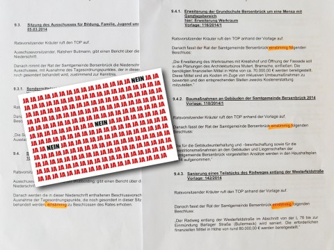 221 x stimmte die CDU-Opposition im Samtgemeinderat mit Ja. Zu den Haushalten sagte sie Nein. Die 22 Sitzungsprotokolle zeigen: Bei den Investitionen war man nur 3 x unterschiedlicher Meinung.