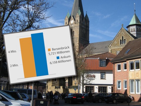 Ankums Steuerkraftzahl 2016 liegt um 436.000 Euro über der von Bersenbrück. Damit überholt Ankum erstmalig Bersenbrück. Hier die Zahlen für alle sieben Gemeinden.