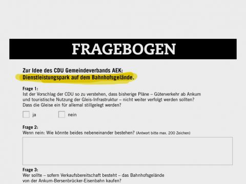 Die CDU Ankum präsentierte zur Wahl die Idee „Dienstleistungspark“. Um genauer darüber berichten zu können, stellte klartext einige Fragen. Leider gab’s keine Antworten.