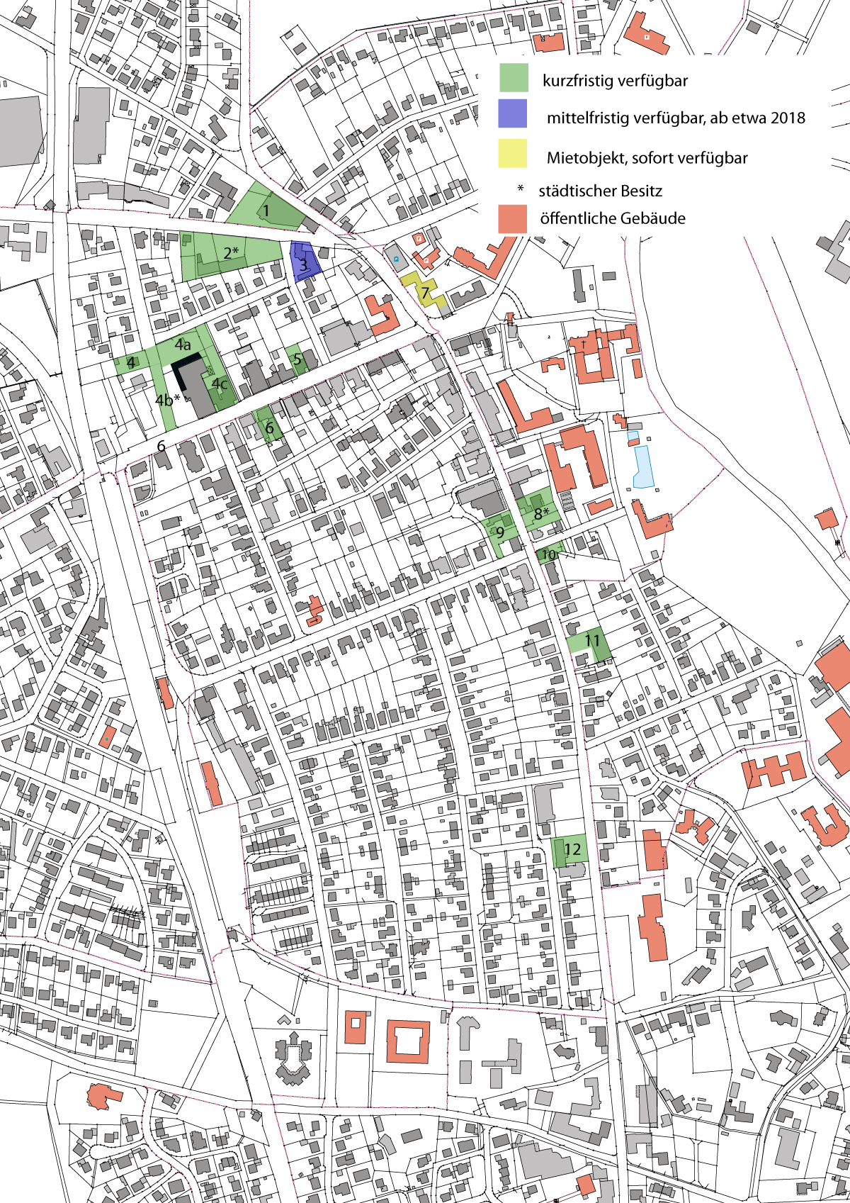 Von 1 bis 12: Verfügbare Flächen in der Innenstadt – für große Ansicht bitte Karte anklicken. (Karte Stadt Bersenbrück).