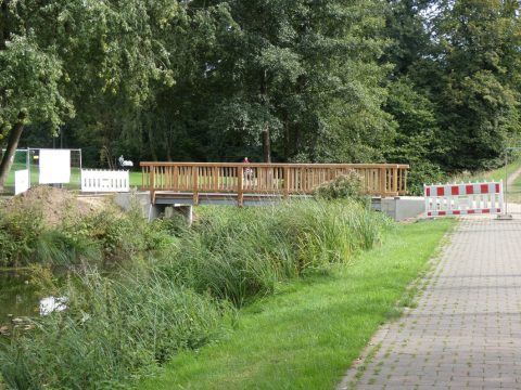 Am Freitag war sie da, die neue Brücke beim Ankumer See. Freigegeben ist sie noch nicht, aber nun ist ein Ende der brückenlosen Zeit in Sicht.