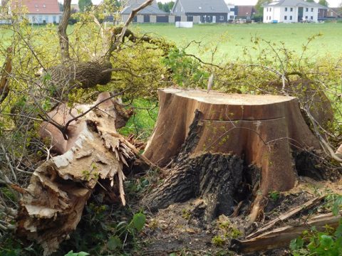 „Durch den kräftigen Einschlag“, so die Feuerwehr, „wurden Teile der Eiche in einem Umkreis von mehreren Metern verteilt.“ Zu retten gab es in Sachen Baum nichts. Er wurde gefällt. Derzeit liegt, was einmal ein stolzer, aufrecht stehender Baum war, auf dem Acker. Gegenüber steht ein Haus, das ebenfalls in Mitleidenschaft gezogen wurde. Dort gingen in einem Stallgebäude Fenster zur Bruch.
