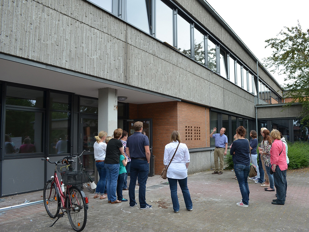 „Die Besuchergruppe aus Eltern und Lehrkräften“, heißt es in einer Pressemitteilung der Samtgemeinde, „ließ sich von Diplomingenieur Jürgen Brockmann aus dem Fachdienst für Planen und Bauen der Samtgemeinde Bersenbrück durch das Schulgebäude führen.“ Feststellen konnten die Besucher schon jetzt, „dass die Umbaumaßnahmen erkennbar größere Raumeinheiten geschaffen haben. Zudem sind bereits Nischen in den Fluren und Gängen erkennbar, die mit runden, stufenförmigen Elementen zum Sitzen und Verweilen einladen. ‚Das wirkt schon jetzt hell und freundlich’ und ‚Es ist gemütlich und trotzdem sehr großzügig’, lauteten denn auch einige Elternkommentare nach der Besichtigung.“