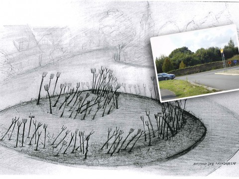 Kunst fragt. Kunst fordert.: Das lesen Besucher an einer Wand, wenn sie das Atelier des Osnabrücker Künstlers Volker-Johannes Trieb besuchen. Triebs Projekt „Aufstand der Mistgabeln“ für den Kreisel in Woltrup-Wehbergen ist ein Angebot an Bersenbrück, sich auf Fragen und Forderungen einzulassen.